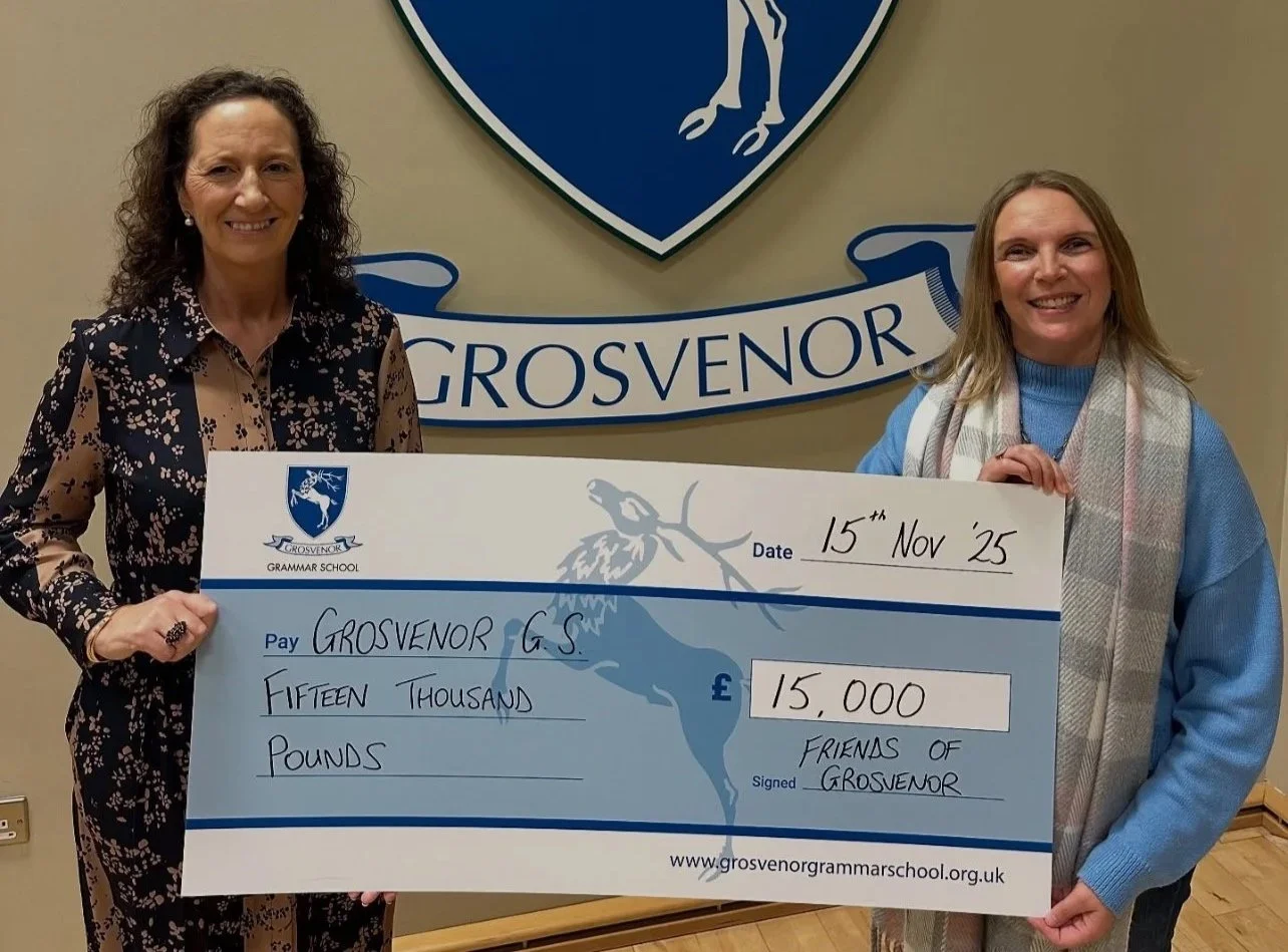 Many thanks to parent fundraising body 'Friends of Grosvenor', which has made an incredible donation of £15,000 to the School! Chairperson Joanne Mitchell presented the cheque to Dr Vasey on Saturday morning.